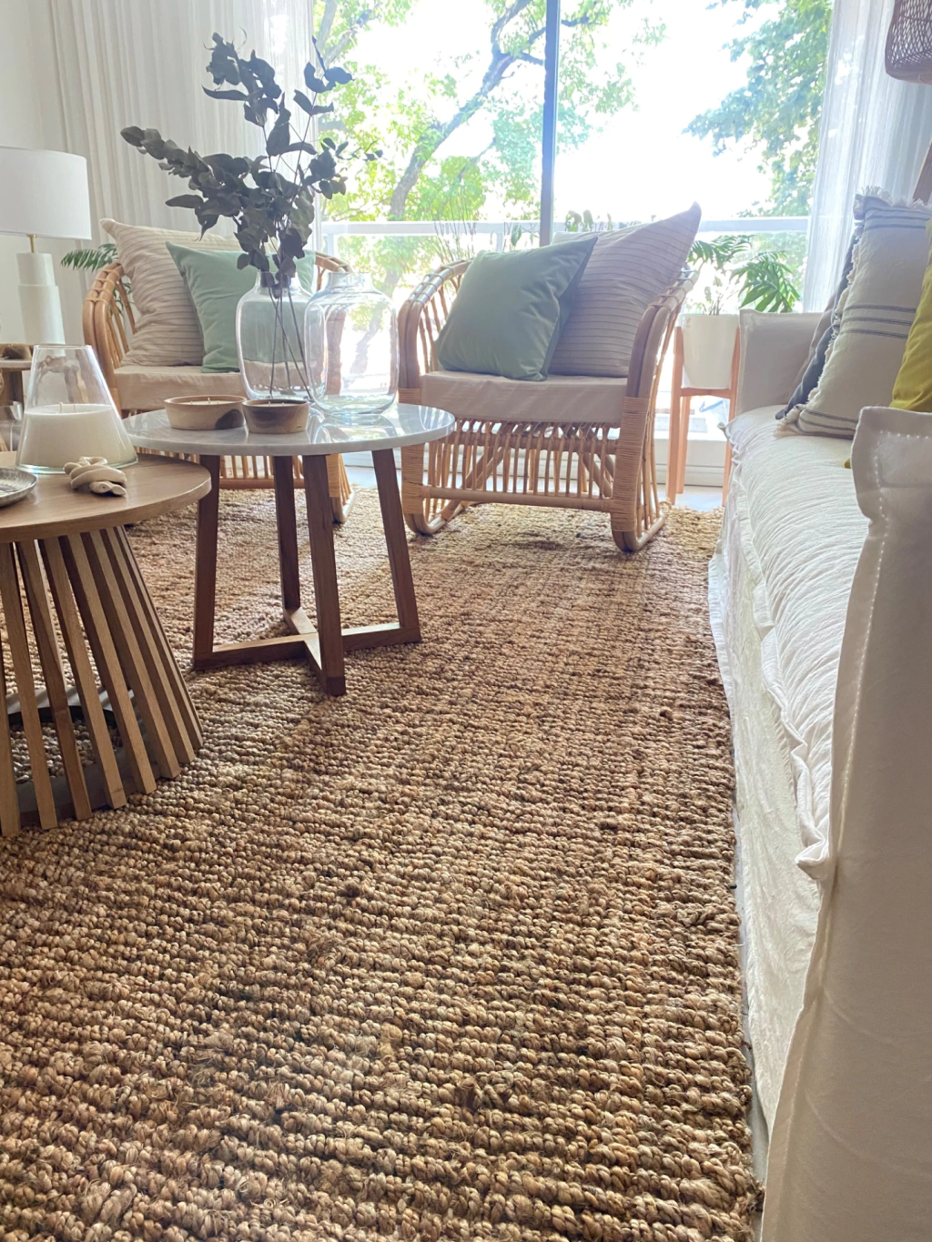 Alfombra Franke de Yute Grueso Elegí la alfombra de yute importada de la India, con un espesor de 2,5 cm que aporta robustez y estilo natural a tus ambientes. Disponible en tres tamaños: chica (1.60x2.30 m), mediana (2x3 m) y grande (2.5x3 m).