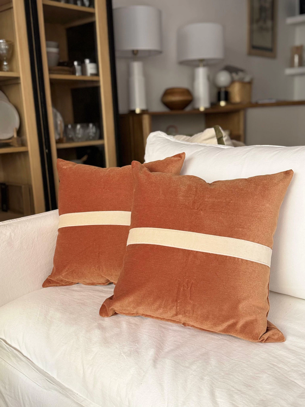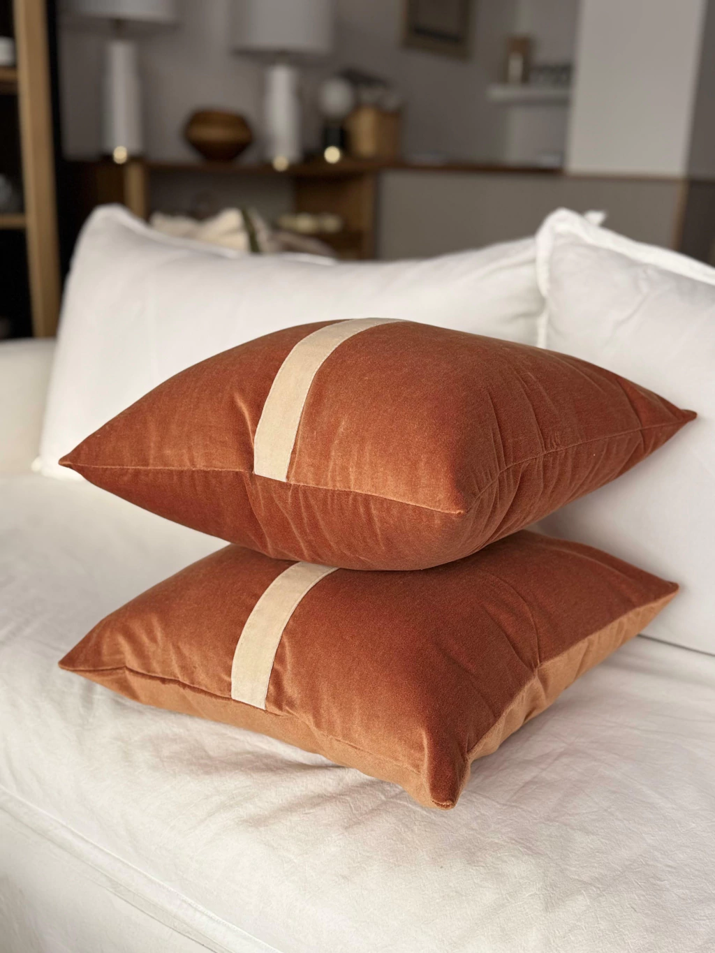 Descubre el Almohadón Carlow de pana de algodón, ideal para darle un toque cálido y elegante a tu hogar. Este almohadón cuenta con una franja central de pana y un relleno de vellón siliconado que garantiza comodidad y suavidad.