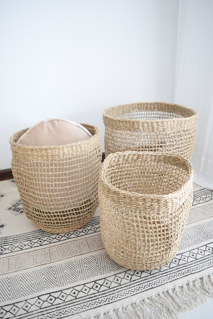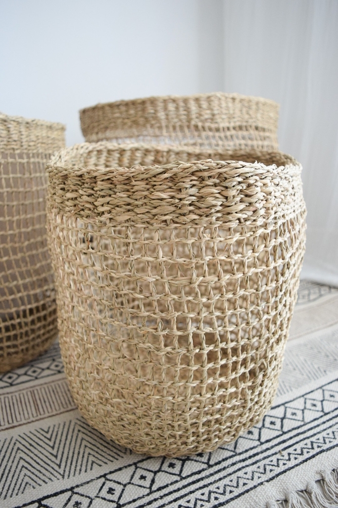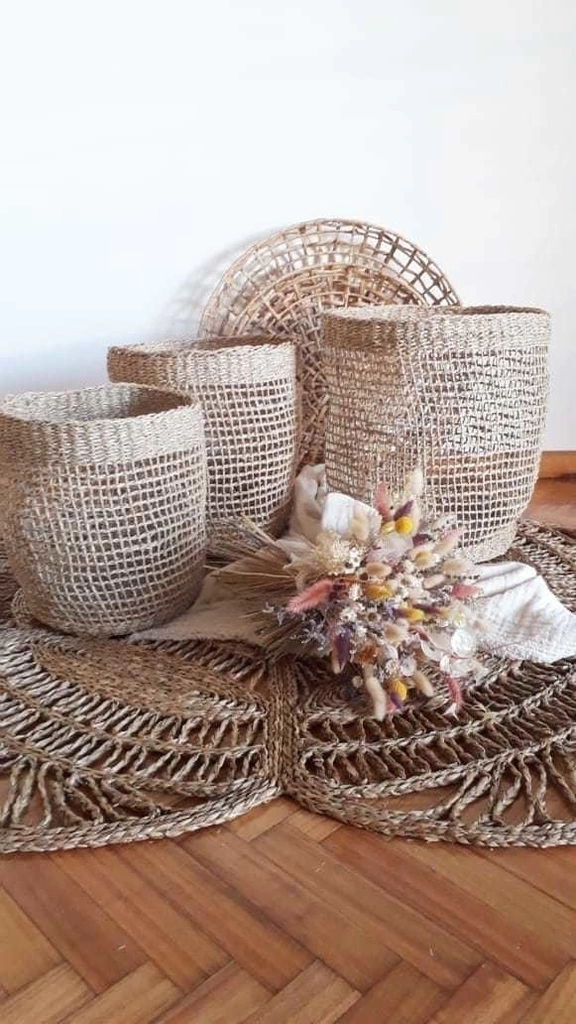 Descubre la elegancia y funcionalidad de nuestro canasto de seagrass trenzado. Perfecto para cualquier espacio, este canasto combina diseño y practicidad.