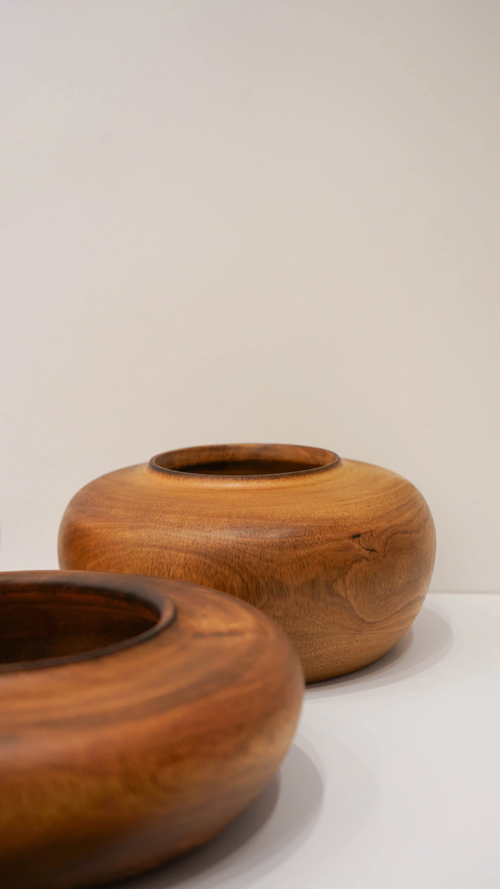 Cuenco Nola de madera de mango en color natural: la combinación ideal de funcionalidad y estilo para tu hogar. Disponible en tres medidas: 22 x H8 cm, 17 x H12 cm y 20 x H10 cm, perfectas para diferentes usos en la cocina o como elementos decorativos.
