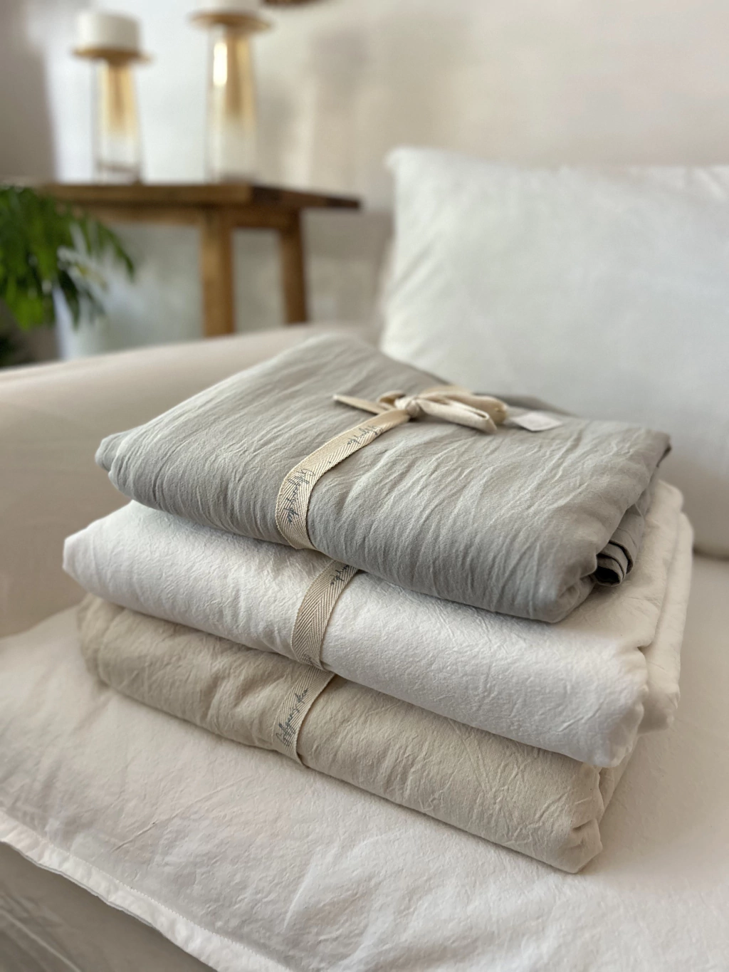FUNDA DE EDREDON DE LINO GRIS PERLA CON REVERSO PERCAL