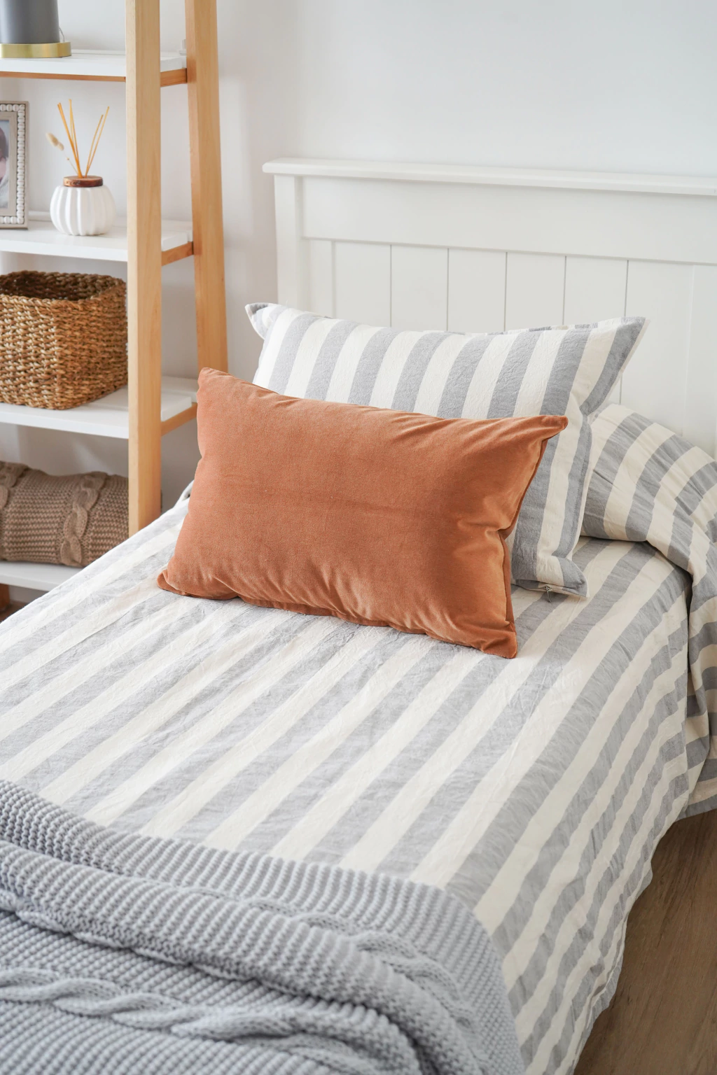 Elegí esta funda de edredón de tusor a rayas con cierre invisible para un estilo sofisticado y moderno. Su reverso está disponible en tusor crudo o percal de 200 hilos, garantizando suavidad y durabilidad. Incluye una funda de almohadón de 50x70 cm para un juego completo.