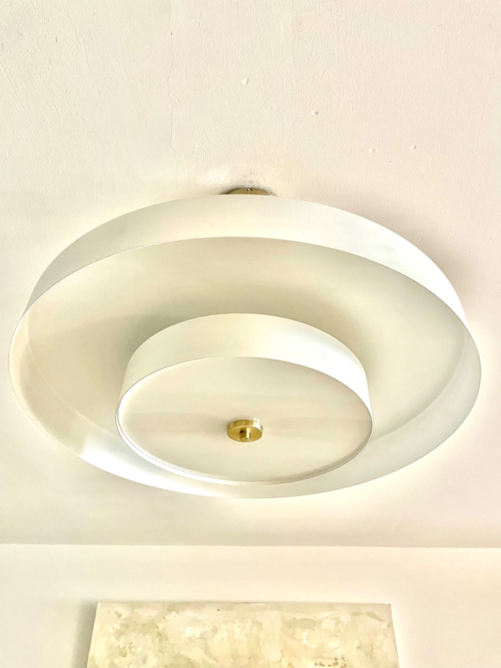 La Lámpara de techo Acopla doble XL Blanco y Bronce es perfecta para quienes buscan un diseño moderno y elegante. Con unas medidas de 60 cm de diámetro y 23 cm de altura, combina un acabado blanco con detalles en bronce que aportan calidez y sofisticación a cualquier ambiente. Ideal para iluminar y decorar espacios amplios, esta lámpara es un accesorio funcional y de alta calidad que realza tu hogar con estilo.