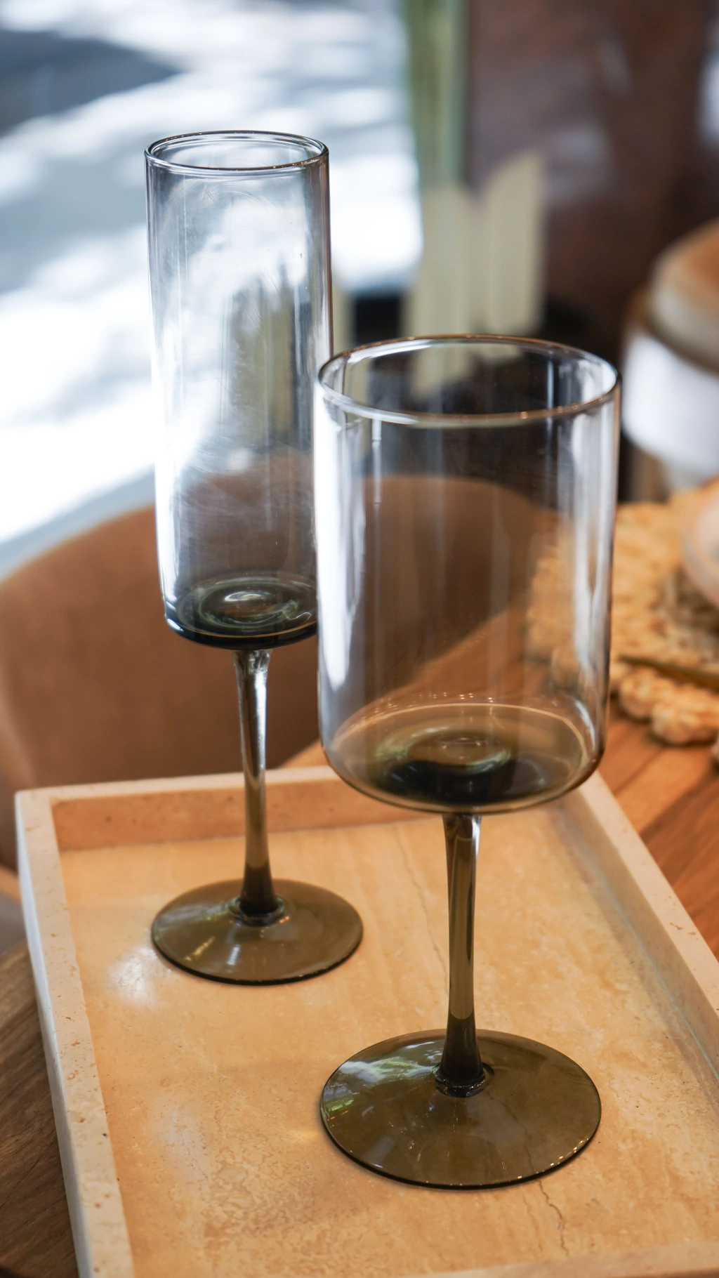 Set x6 Copas Black en dos medidas: 21x7,5 cm con capacidad de 420 ml y 23,5x8 cm con capacidad de 500 ml. Fabricadas en vidrio cristalino de alta calidad, aportan elegancia y sofisticación a cualquier ocasión. No aptas para lavavajillas, se recomienda limpieza manual para preservar su brillo y durabilidad. Ideal para disfrutar tus bebidas con estilo y distinción.