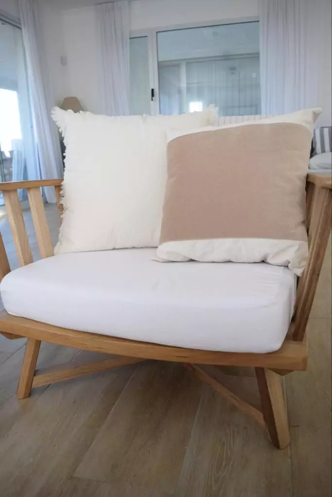 Descubrí el Sillón modelo Gervasoni, un diseño exclusivo de 90 cm de diámetro, elaborado en madera de petiribí de alta calidad. Incluye un cómodo almohadón en lienzo o tusor color natural, ideal para complementar cualquier ambiente.