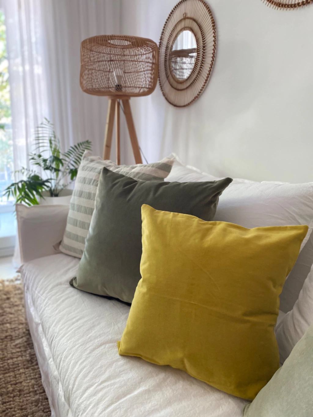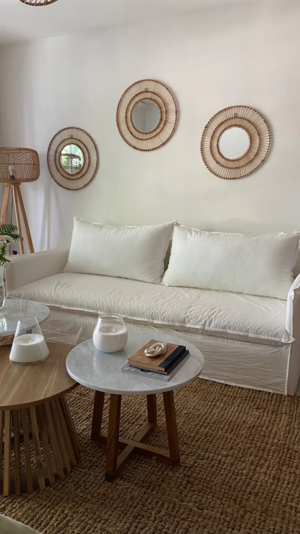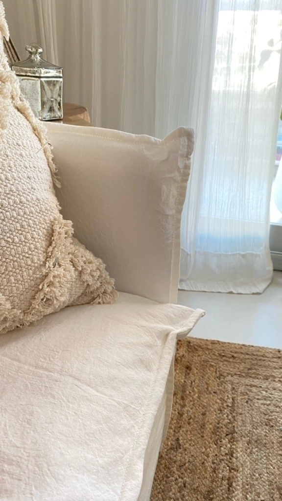 La estructura de los sillones está retapizada en tusor y viene con la funda desmontable de la misma tela.